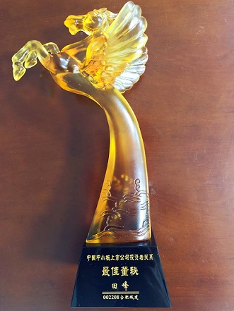 公司董事會秘書田峰同志被評選為中國中小板上市公司投資者關(guān)系最佳董秘。在目前A 股958家中小板上市公司中,僅有50家上市公司董秘獲此殊榮。