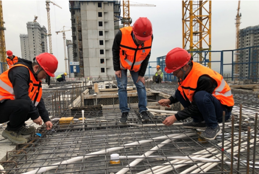 濱湖沁園代建項目黨員帶上安全帽,穿上防護背心,親身體驗了施工現(xiàn)場的鋼筋綁扎、墻體砌筑,與農(nóng)民工兄弟交流操作難點,分享操作經(jīng)驗。